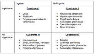 Simplemente delegando tareas en el cuadrante III y eliminando las del cuadrante IV
